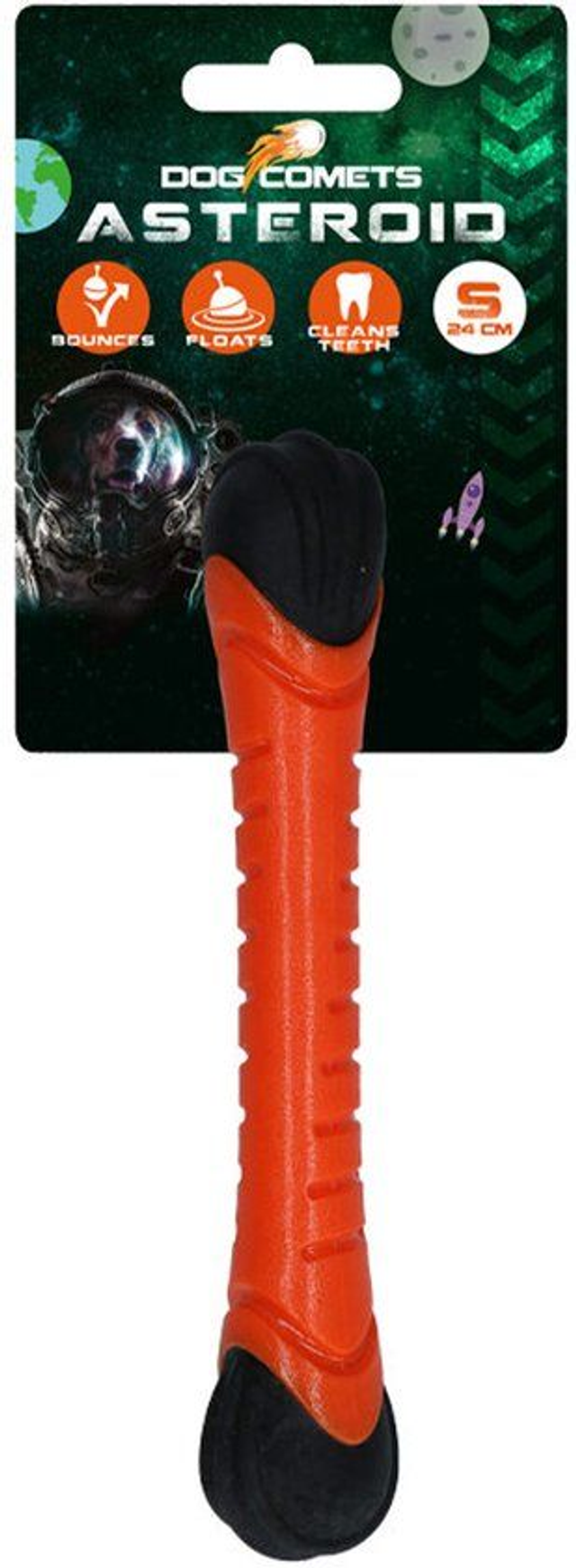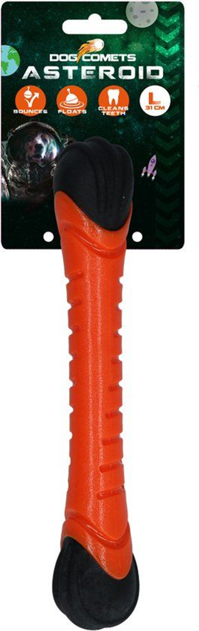 Met de Dog Comets Asteroid zorg je voor urenlang speelplezier! Houdt je hond van rennen en apporteren? Gooi de werpstok weg, laat je hond erachteraan rennen en deze weer terugbrengen. Is je hond gek op water? Gebruik de werpstok dan in en rond het water. De werpstok blijft namelijk drijven, waardoor je hond deze makkelijk terug kan vinden in het water. Vindt je hond trekspelletjes het leukst? Dankzij de schuimrubberen uiteinden heeft je hond een goede grip. De pieper in het midden zorgt voor extra veel plezier tijdens het spelen. Je hoeft niet bang te zijn dat je de werpstok kwijtraakt; door de felle kleuren valt de werpstok extra goed op.