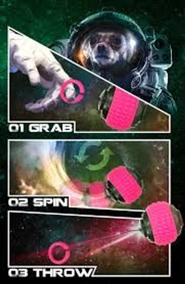 Pak de ring aan het touwtje, draai rond en gooi de bal ver weg. Het touwtje rolt vanzelf op in de bal. De ribbels in het rubber masseren het tandvlees en helpen het gebit te reinigen.