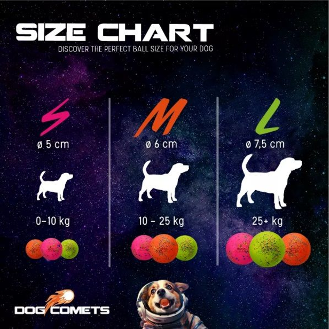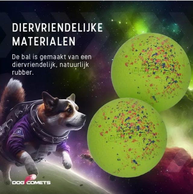 Natuurlijke rubberen bal die perfect stuitert, drijft op water en super duurzaam is. Gemaakt van 100% natuurlijk rubber en is makkelijk schoon te maken.Meer dan 1.000.000 lichtjaren van ons af, ver weg in het heelal is deze komeet ontstaan om jouw hond maximaal apporteerplezier te geven.